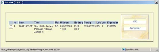 Wanneer exemplaren die hierbinnen vallen uitgeleend worden, ziet dat er op het scherm zo uit: