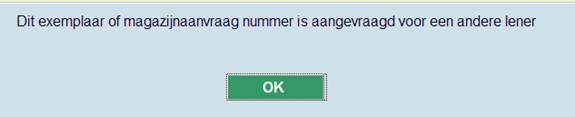 Wanneer u de barcode scant van een exemplaar dat door een andere lener is aangevraagd, verschijnt onderstaande melding:
