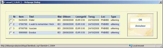 Indien voor de lener gereserveerde objecten klaarstaan, toont het systeem een lijst met de titels van de betrokken objecten.